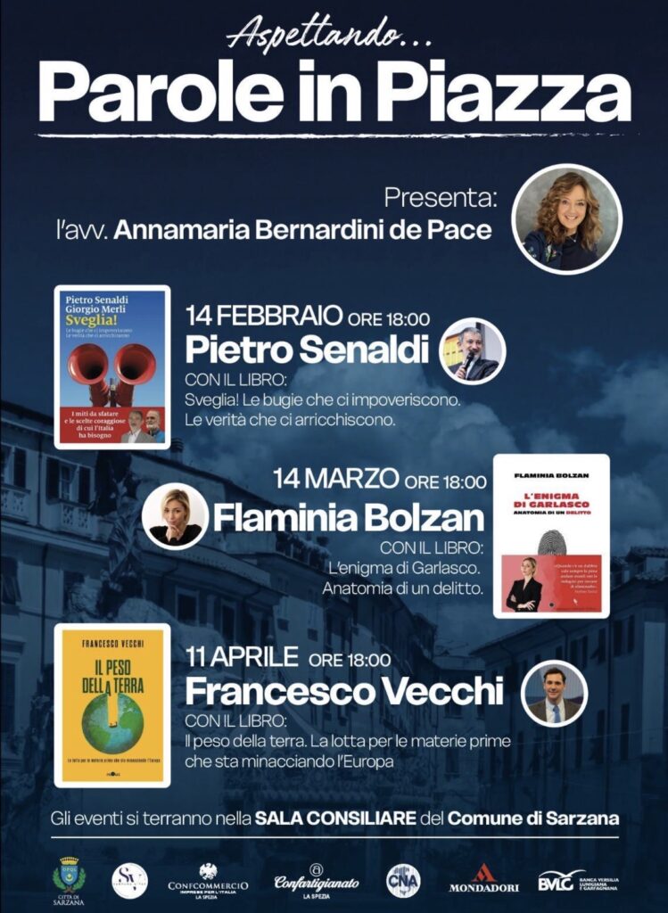 Sarzana si prepara ad accogliere una nuova edizione di Parole in Piazza con un ciclo di incontri che anticipano il festival: “Aspettando Parole in Piazza”. Tre appuntamenti tra febbraio e aprile 2026 porteranno in città giornalisti, scrittori e protagonisti del dibattito contemporaneo per presentazioni e dialoghi aperti al pubblico.