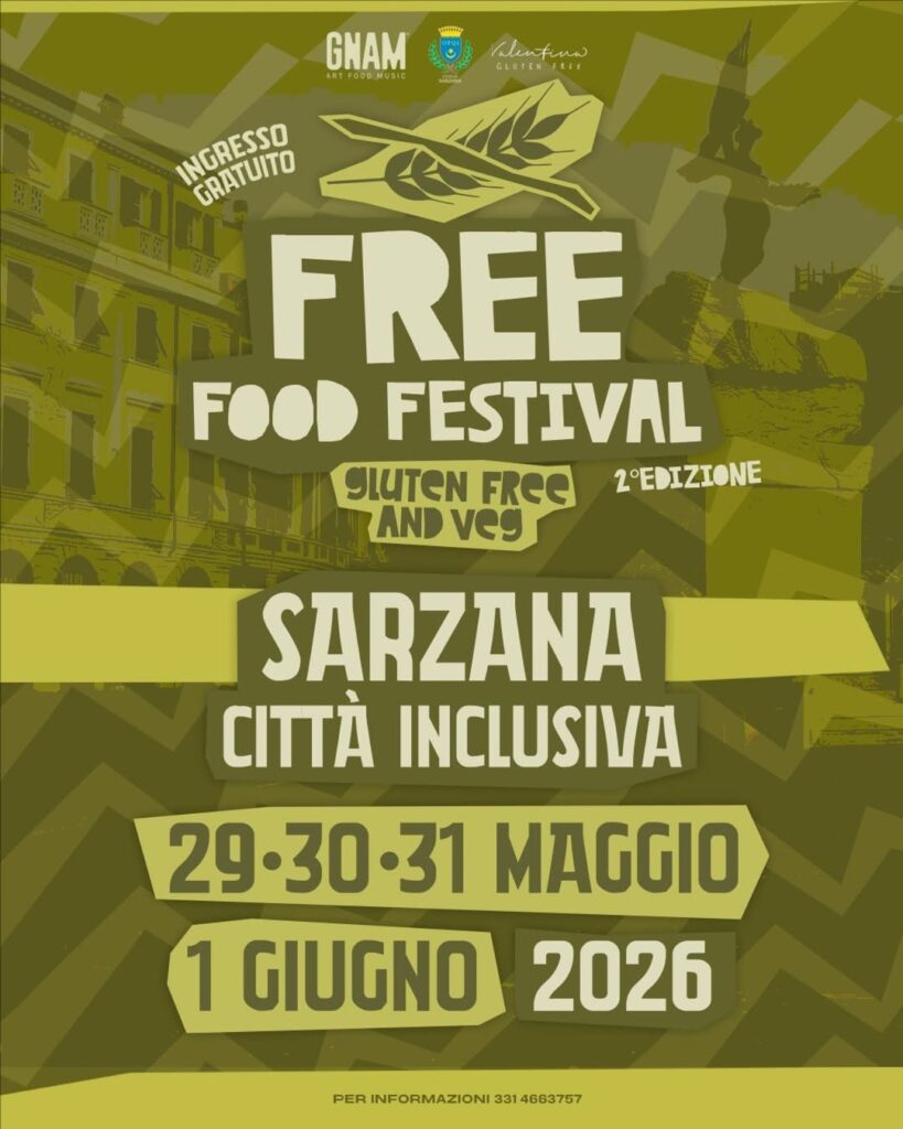 Da venerdì 29 maggio a lunedì 1 giugno GNAM Food Event arriva a SARZANA per la seconda edizione del Free Food Festival, il festival del senza glutine e del mondo vegetariano e vegano.