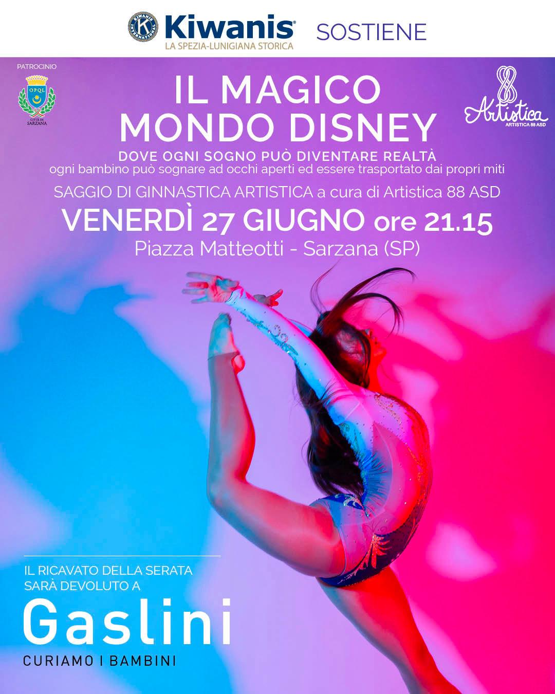 Una serata dedicata alla magia, ai sogni e alla solidarietà: arriva a Sarzana “Il Magico Mondo Disney”, il saggio di ginnastica artistica a cura di Artistica 88 ASD, sostenuto da Kiwanis La Spezia-Lunigiana Storica con il patrocinio del Comune di Sarzana.